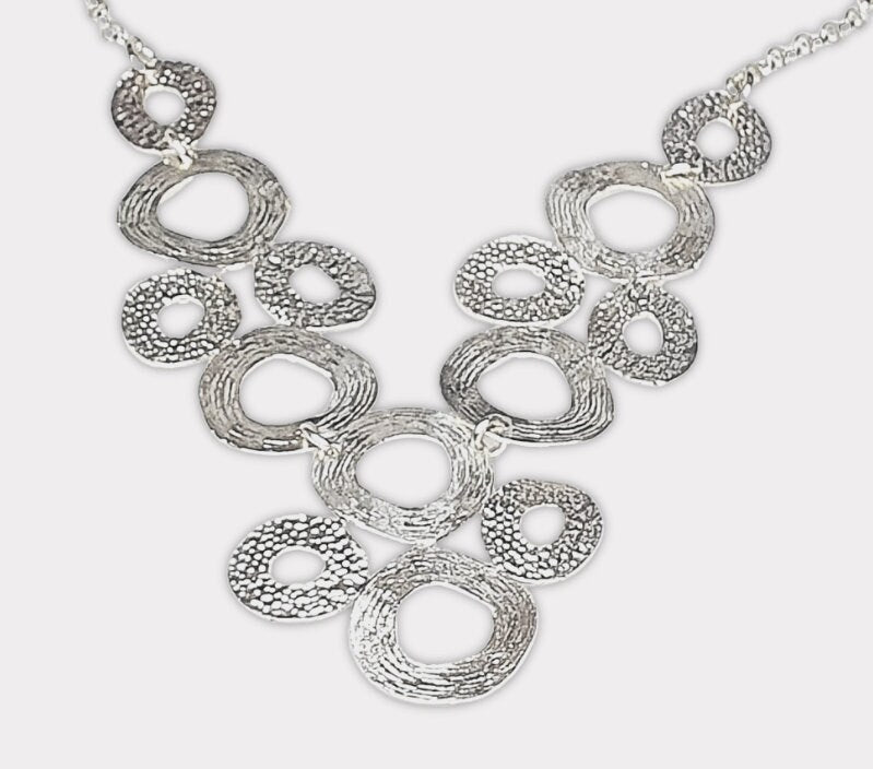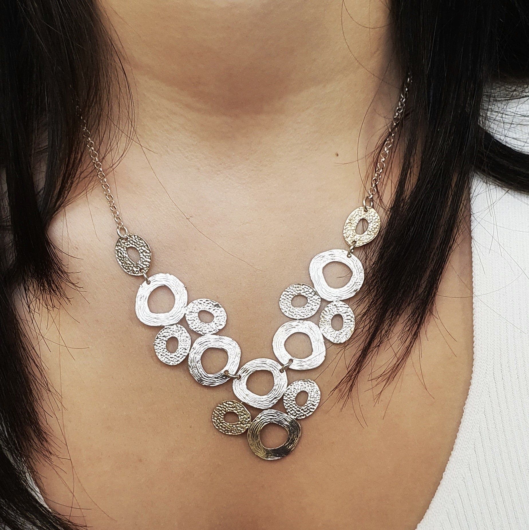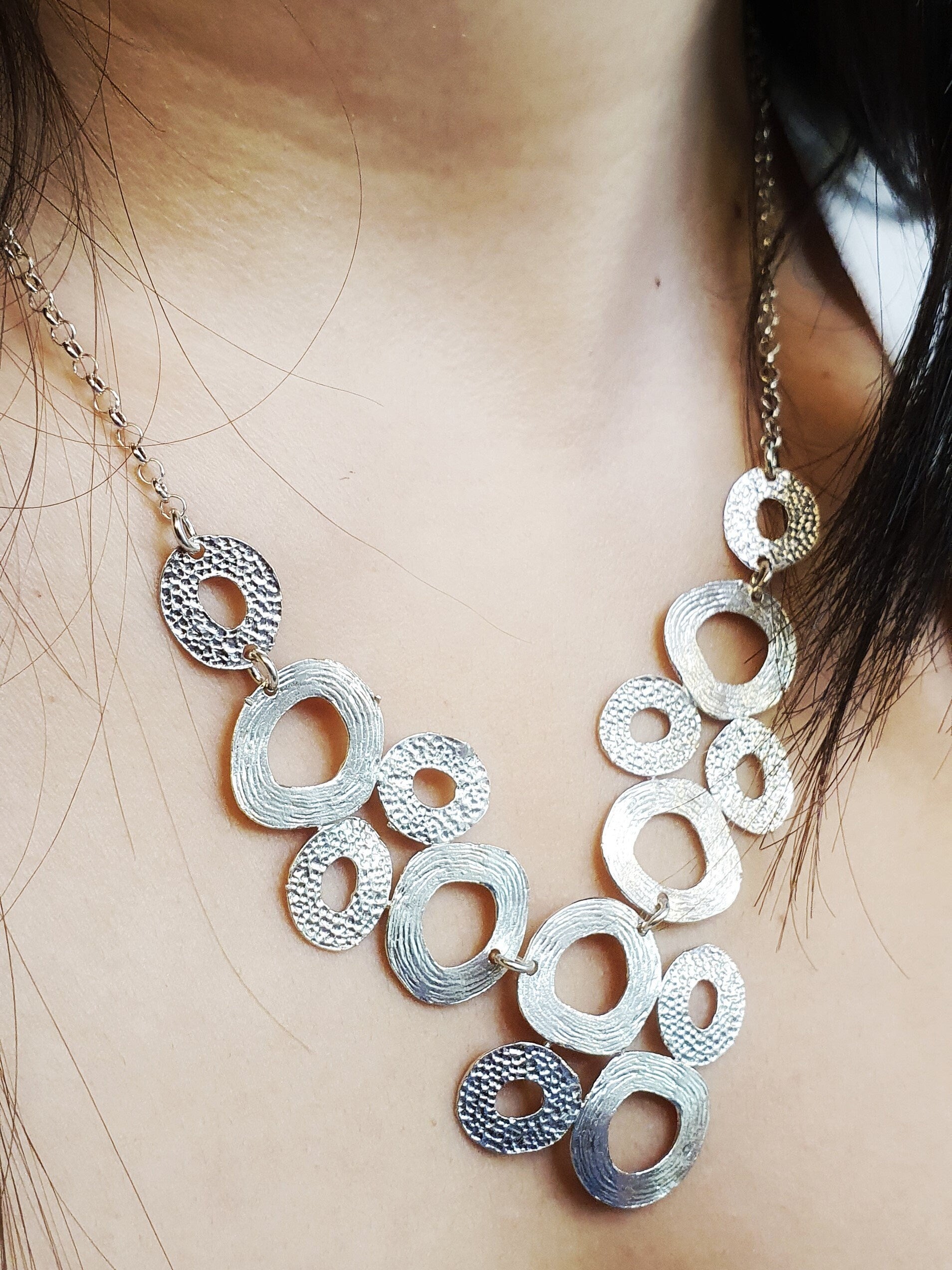 925 Sterling Silver Necklace | Large Necklace | Multi Size Circles | Textured Necklace