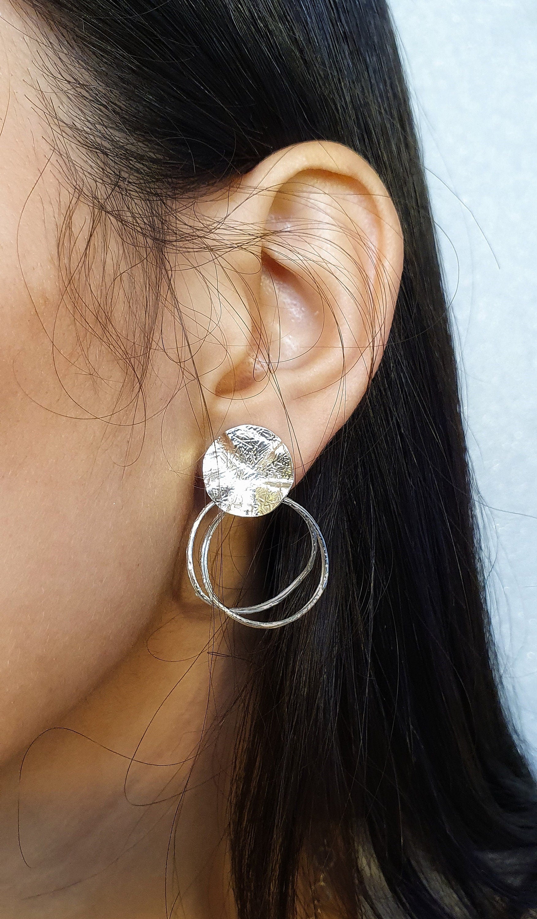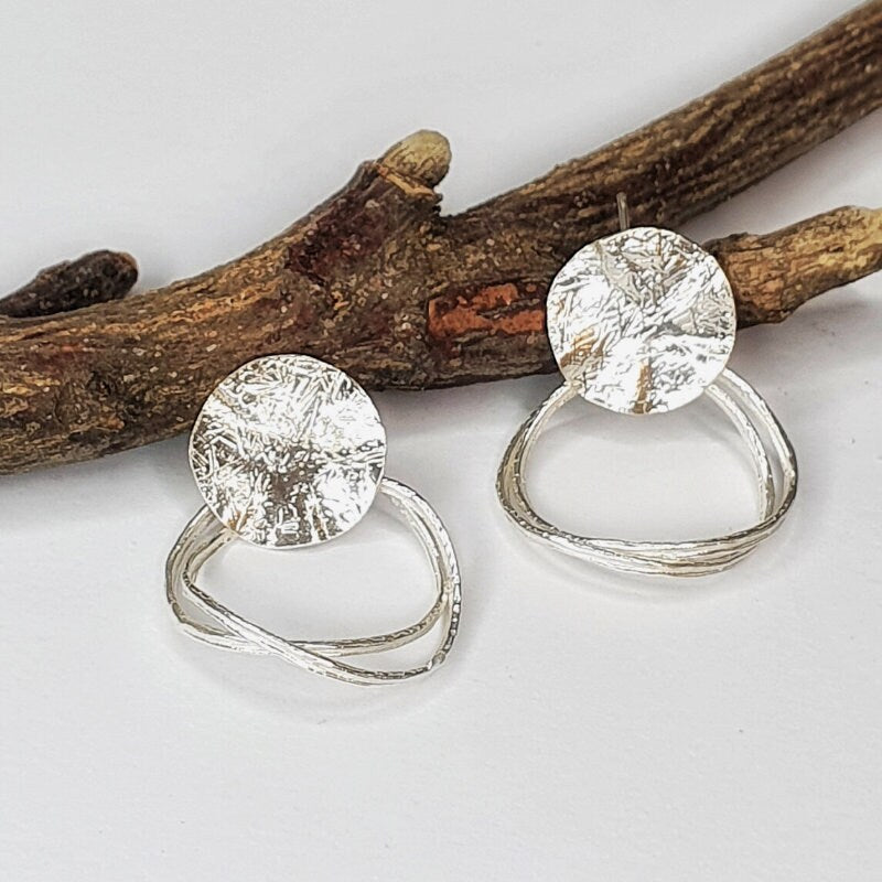 עגילי כסף מינימליסטיים עם טקסטורה ייחודית